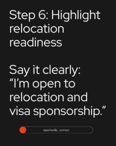 “I’m open to relocation and available for visa sponsorship opportunities.”