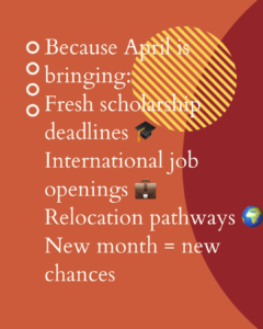April is one of the most active opportunity months for scholarships abroad, relocation programs, and international job applications.