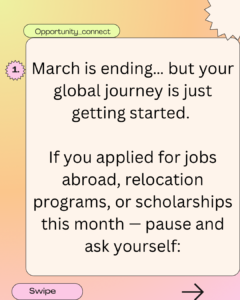 Now that March is wrapping up, this is the best moment to pause, reflect, and plan your next strategic steps toward working, studying, or relocating abroad.