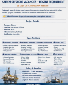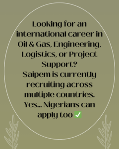 Saipem is currently hiring across several technical and project-based departments worldwide, including opportunities available to applicants from Nigeria.