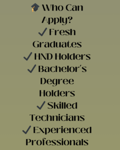 Applicants may qualify for both local employment opportunities and international project assignments depending on their experience level.
