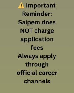 Saipem does not charge any application fees. Applicants should only submit applications through official recruitment channels.
